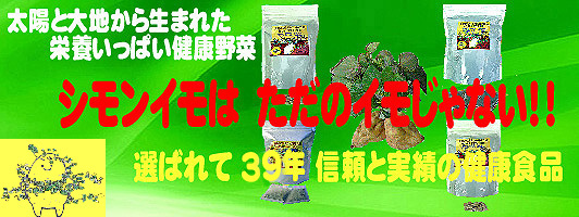 当社は、シモンイモ一筋39年! 信頼と実績の健康野菜【シモンイモ】・ 健康食品【サンシモン】をぜひ一度お試しください。 |